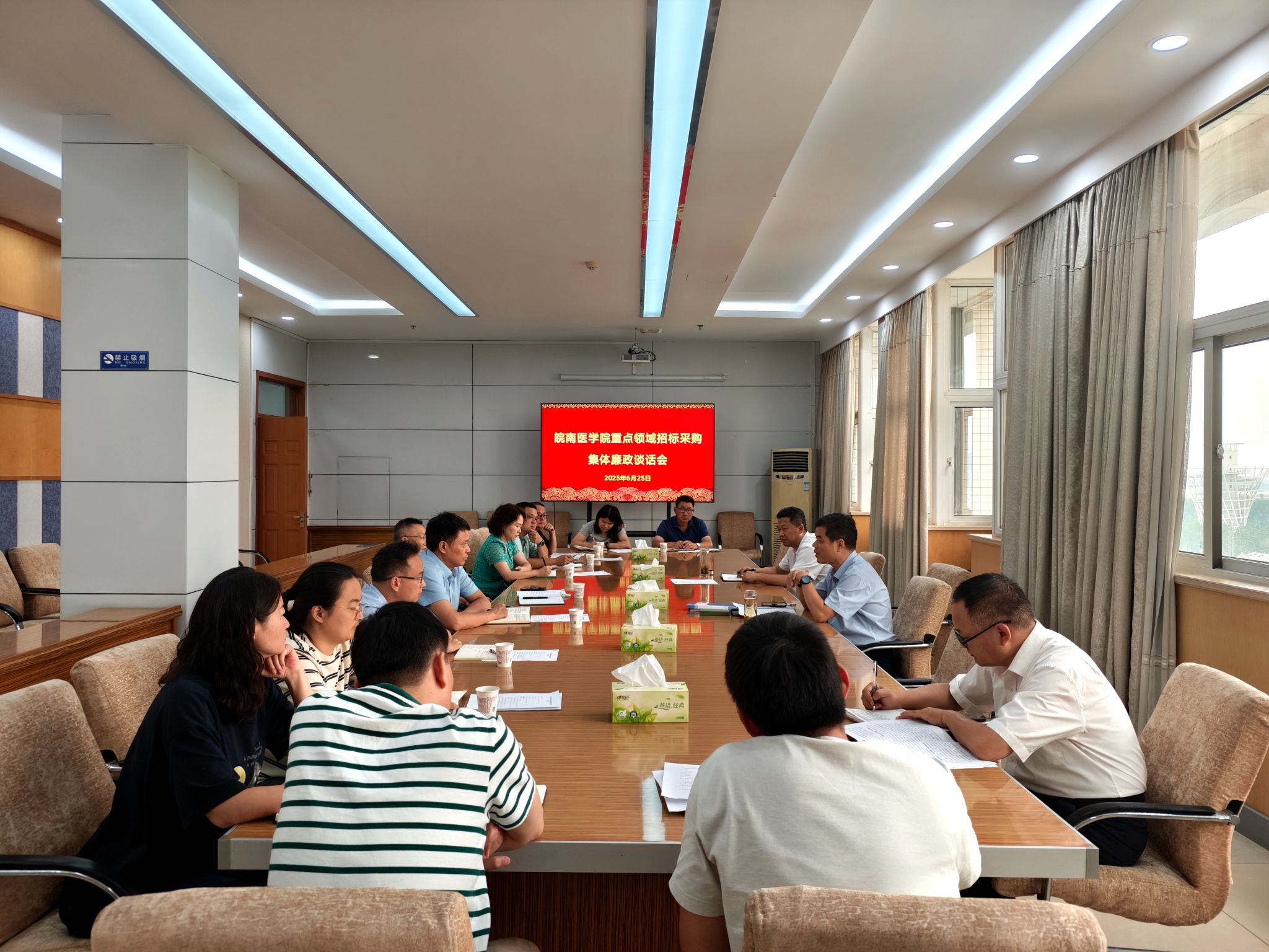 为贯彻落实全面从严治党工作要求,扎实推进巡视反馈问题整改,进一步提升学校物业、食堂领域招标采购以及后续管理的廉政风险防范水平,6月25日下午,学校在行政会议室召开重点领域招标采购集体廉政谈话会。校党委常委、纪委书记、监察专员王保中,党委常委、副院长田磊出席会议并讲话。