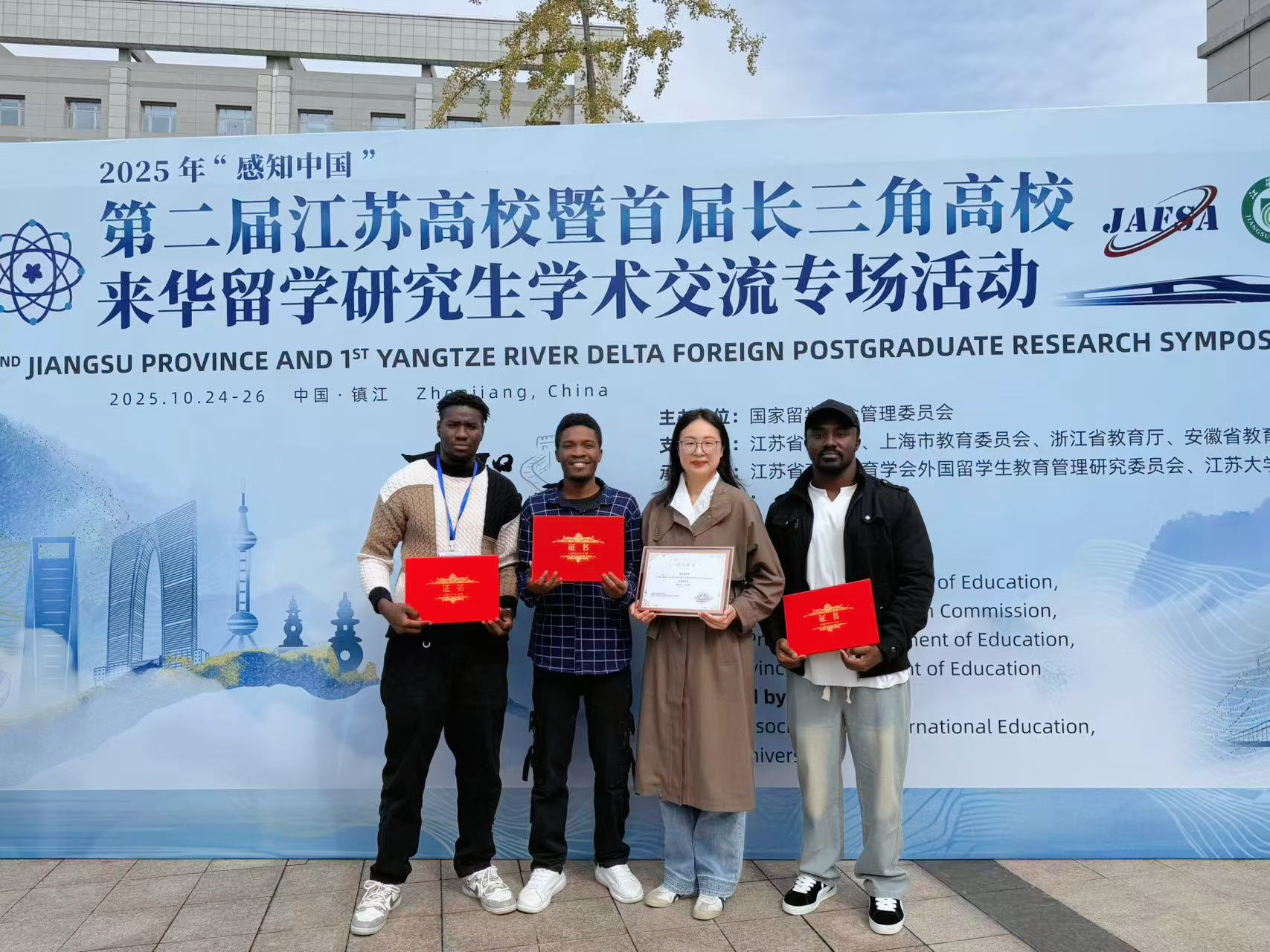 近日,2025年“感知中国”第二届江苏高校暨首届长三角高校来华留学研究生学术交流专场活动在江苏大学举行,来自上海、江苏、浙江和安徽55所高校的400余名中外研究生以及带队教师参加活动。我校国际学生在活动中表现亮眼,包揽一、二、三等奖,学校被授予“优秀组织奖”。
