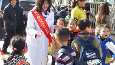 为弘扬“奉献、友爱、互助、进步”的志愿者精神,3月26日下午,医学一系2007级(1)班全体同学前往鲁港小学开展以“春季儿童疾病防护”为主题的“亲亲宝贝,呵护健康”的志愿者活动。