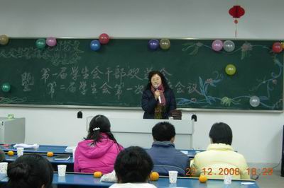12月22日晚,人文与管理系新一届学生会成员以轻松娱乐的方式在西503教室为上届学生会成员举行了一场“茶话”欢送会。欢送会由新任主席卜涛主持,系副主任刘华老师和系团总支书记吴映辉老师以及新老学生会成员共同出席了本次活动。