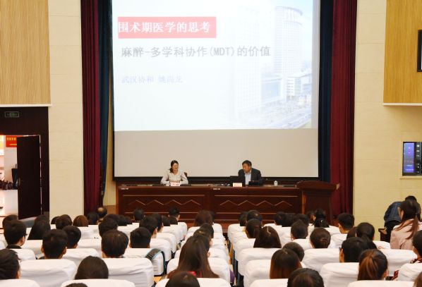 下午三点半,逸夫科技楼一楼学术报告厅座无虚席,麻醉学院师生代表200余人聆听了姚教授题为“从麻醉学走向围术期医学”的讲座,讲座由麻醉学院党委书记、副院长李娜主持。姚尚龙教授首先结合自己的经历讲述了作为一名奋战在临床一线麻醉医生的临床、科研历程,并就可视化喉镜、个体化镇痛、MDT、ERAS等热点问题详细介绍了最新的研究进展。随后他详细介绍了麻醉科医生在围术期医学中的重要作用,并指明现代和未来的麻醉医生如何为生命健康保驾护航。最后,姚教授还与现场的老师和学生进行了互动交流。姚教授满怀激情的讲述、深入浅出的表达和睿智幽默的语言,赢得阵阵热烈的掌声。与会老师和学生纷纷表示,讲座不仅是一场麻醉学专业学术交流的盛宴,更是科研文化精神交流的大餐。