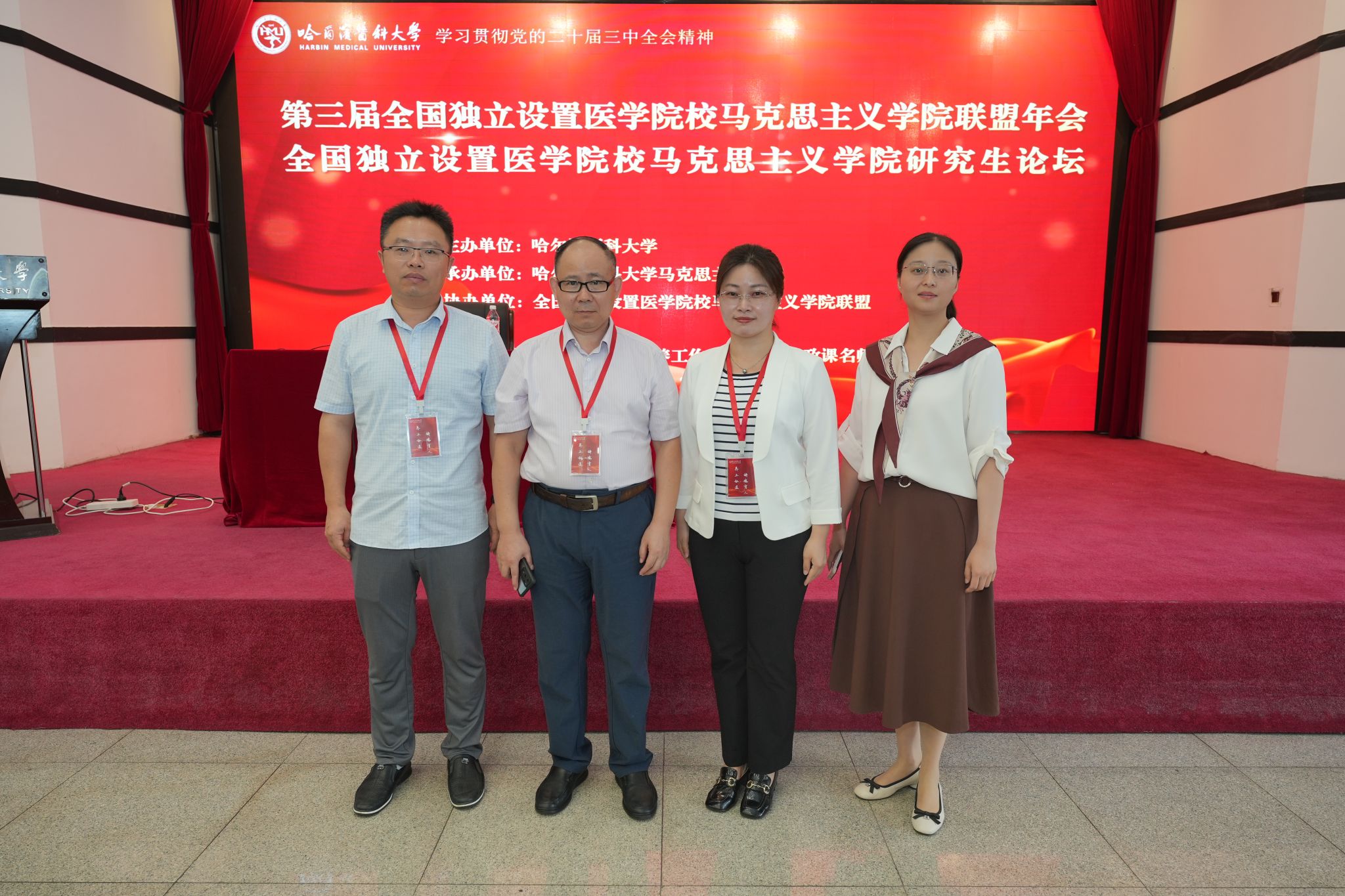 为深入学习贯彻党的二十届三中全会精神和习近平总书记对学校思政课建设作出的重要指示精神,守正创新推动医学院校思政课建设,7月20日-21日,第三届全国独立设置医学院校马克思主义学院联盟年会在哈尔滨召开。会议由哈尔滨医科大学和全国独立设置医学院校马克思主义学院联盟主办,哈尔滨医科大学马克思主义学院承办。来自全国49所独立设置医学院校马克思主义学院的书记、院长、专家及研究生共200余人参加会议。作为联盟发起单位之一,我校马克思主义学院党总支书记邹莹、院长陶庭马带队参加会议,并成功申请成为第五届全国独立设置医学院校马克思主义学院联盟轮值理事长单位。